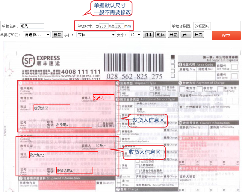 2、编辑快递单模板