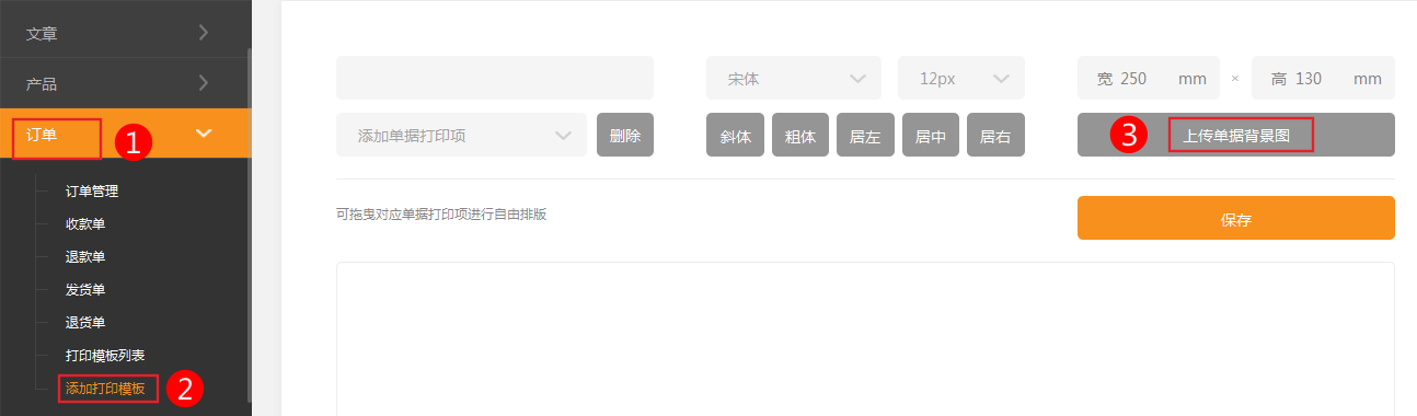 1.依次点击 订单-》添加打印模板-》录入单据名称-》上传单据的图片